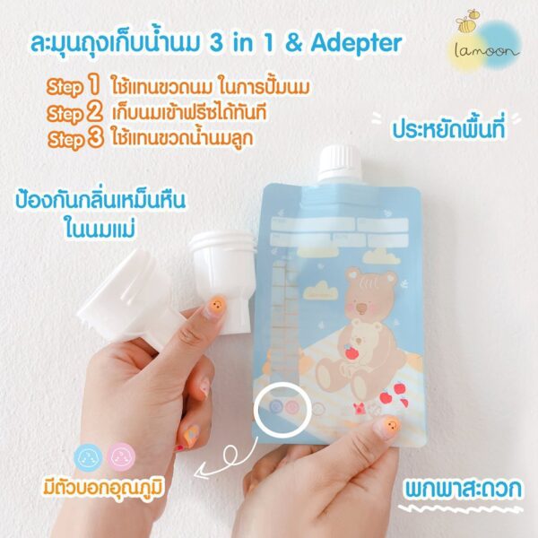 Lamoon 3 in 1 Storage bag ถุงเก็บน้ำนมแม่ 3IN1