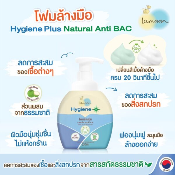 โฟมล้างมือ Hygiene Plus Natural Anti BAC เปลี่ยนสีอัตโนมัติจากสีเขียวเป็นสีขาวเมื่อล้างครบ 20 วินาทีจึงมั่นใจว่า ล้างมือได้สะอาดทุกครั้ง 💚🤍